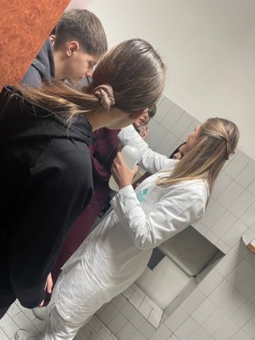 У тишини лабораторије, међу стакленим боцама, прецизним вагама и мирисом лековитих раствора, наши ученици су имали прилику да осете како изгледа одговорност која лечи и знање које служи човеку. Са великом пажњом пратили су сваки покрет, сваку кап раствора која се пажљиво одмерава, свесни да иза тих поступака стоји брига о нечијем здрављу.